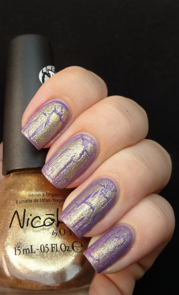 I have another crackling polish for you today. This time from Nicole By OPI. They call them texture coats. The first one I want to show you is Gold Texture. It is a subtle silvery gold. I think it works quite nice but I like OPI shatters more. I layered it over Nicole By OPI I´m A Believer. I just love the combination of purple and gold :) Do you like it too?
